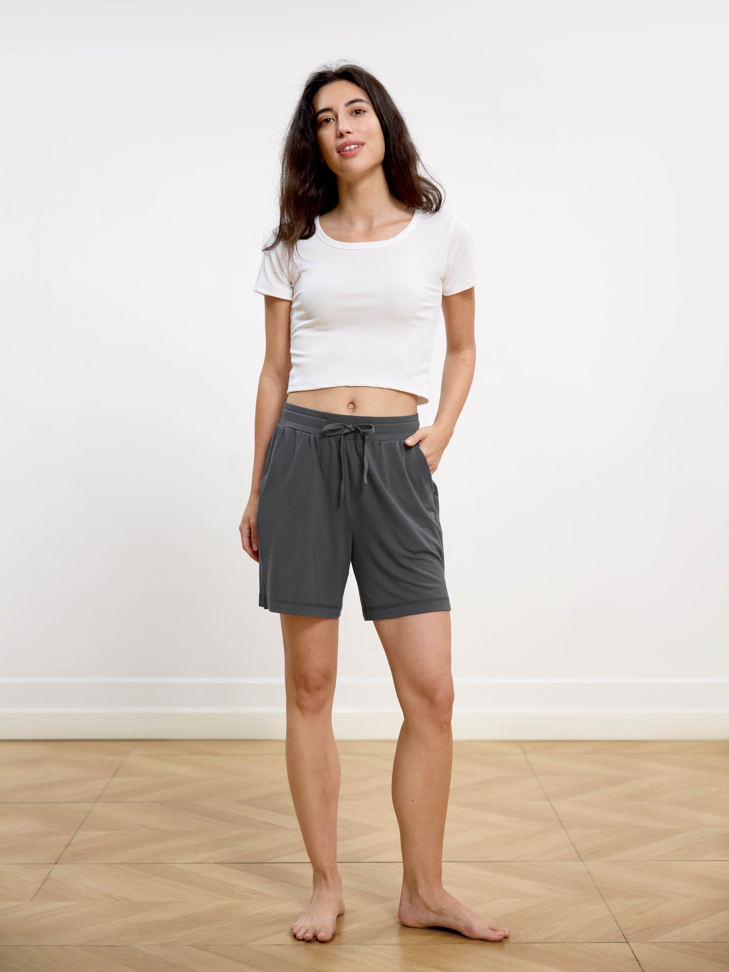 Regular price $34.00 USDYour go-to bamboo drawstring shorts—soft, breathable, and designed for easy movement. With a flattering high-rise cut and a relaxed, modern silhouette, they’re made for lounging, workouts, travel, and casual days out.