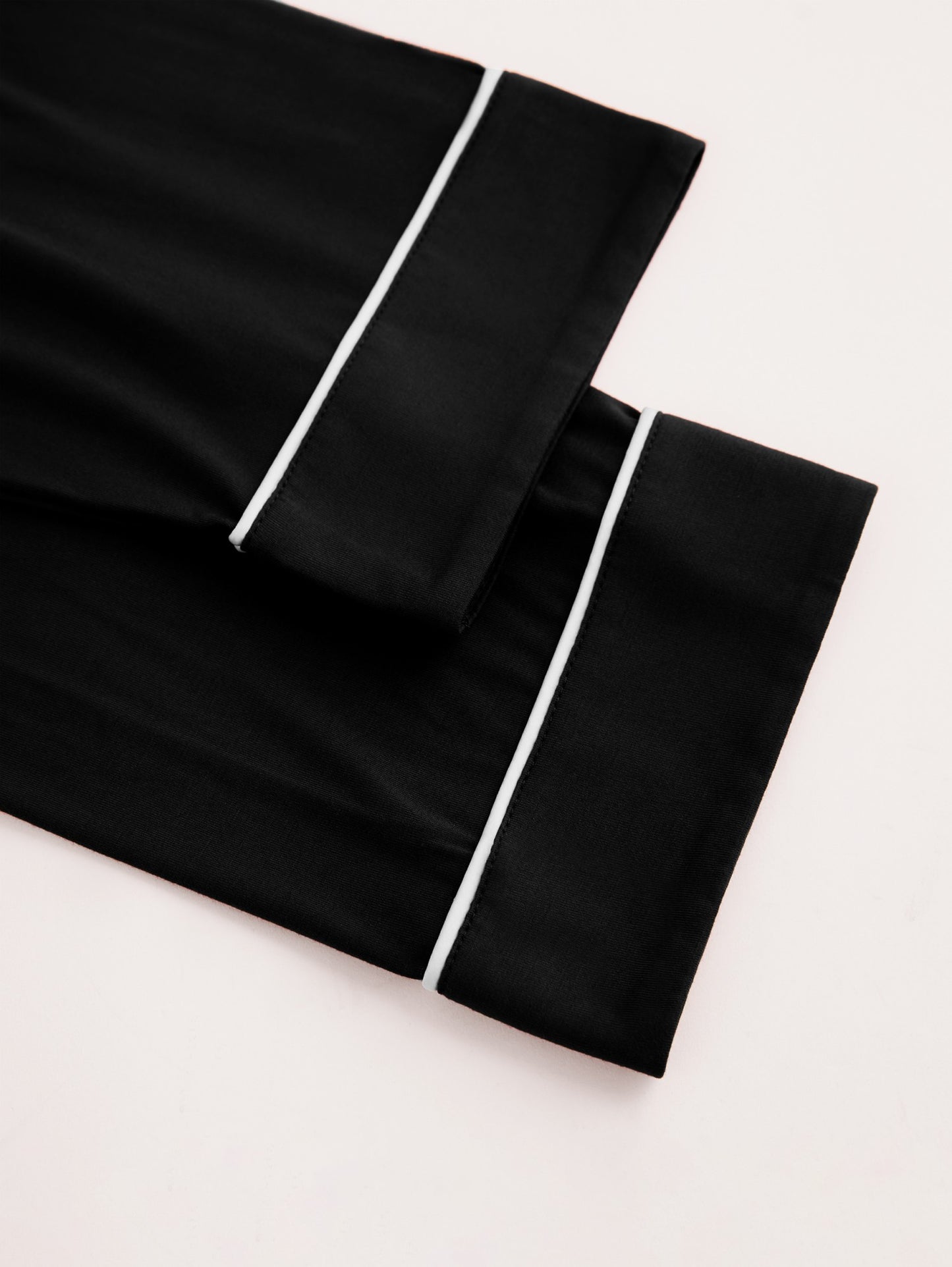 An elevated bamboo capri pajama set designed for breathable comfort with a tailored, sophisticated finish. Contrast piping adds refined detail, while the capri length and relaxed fit make it an easy choice for warm nights and year-round lounging.