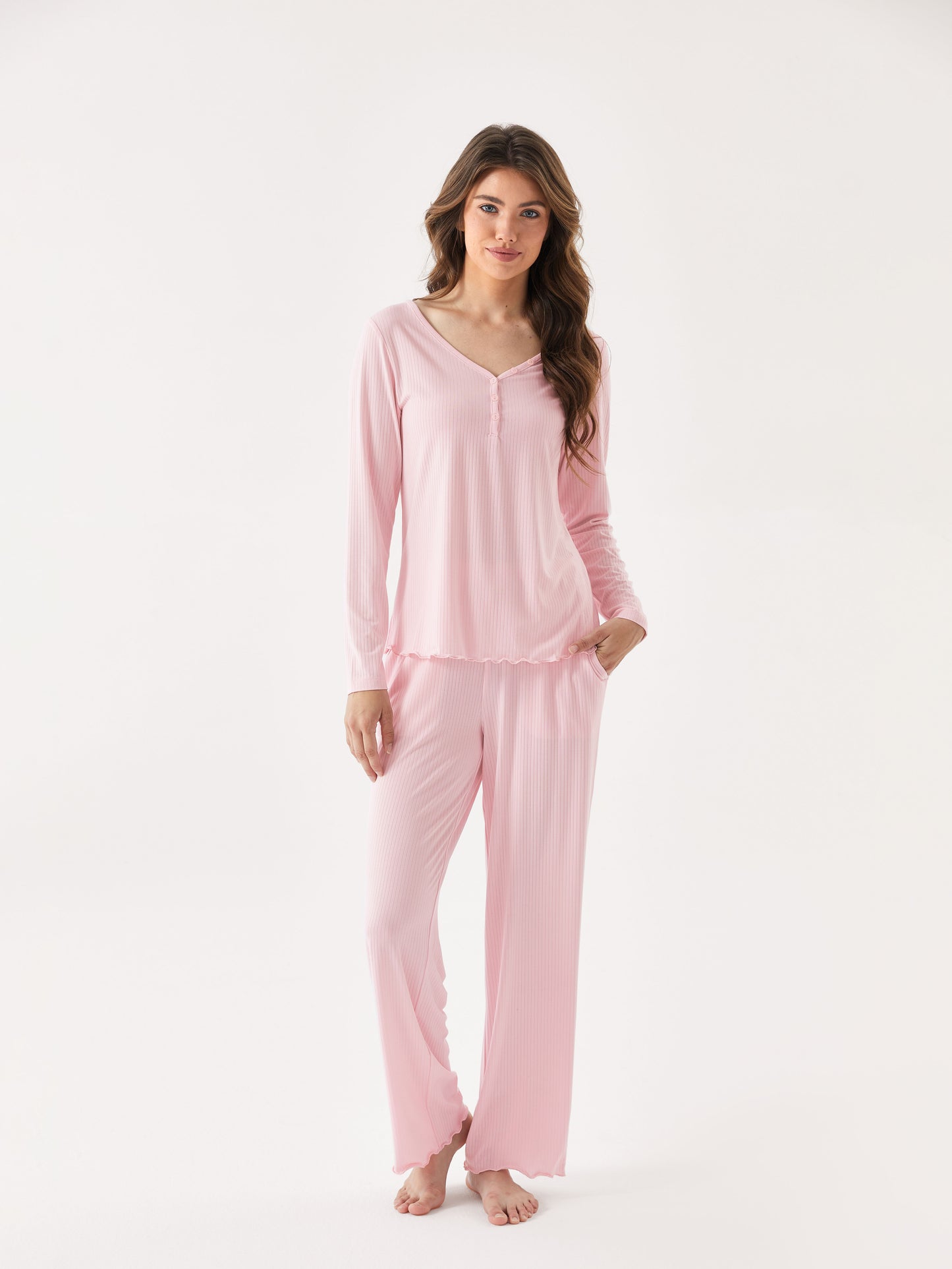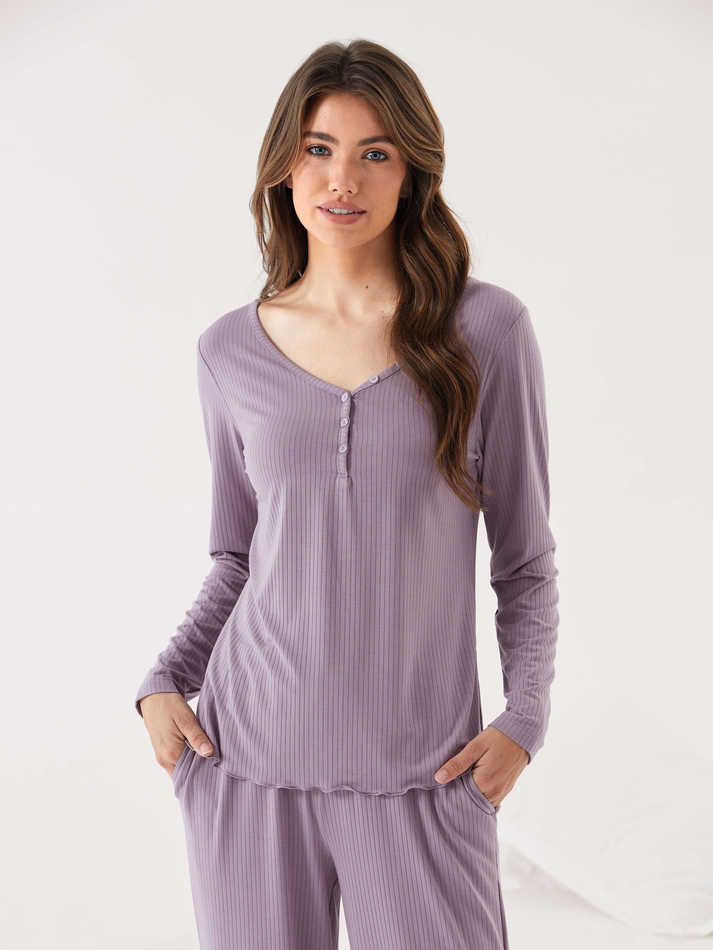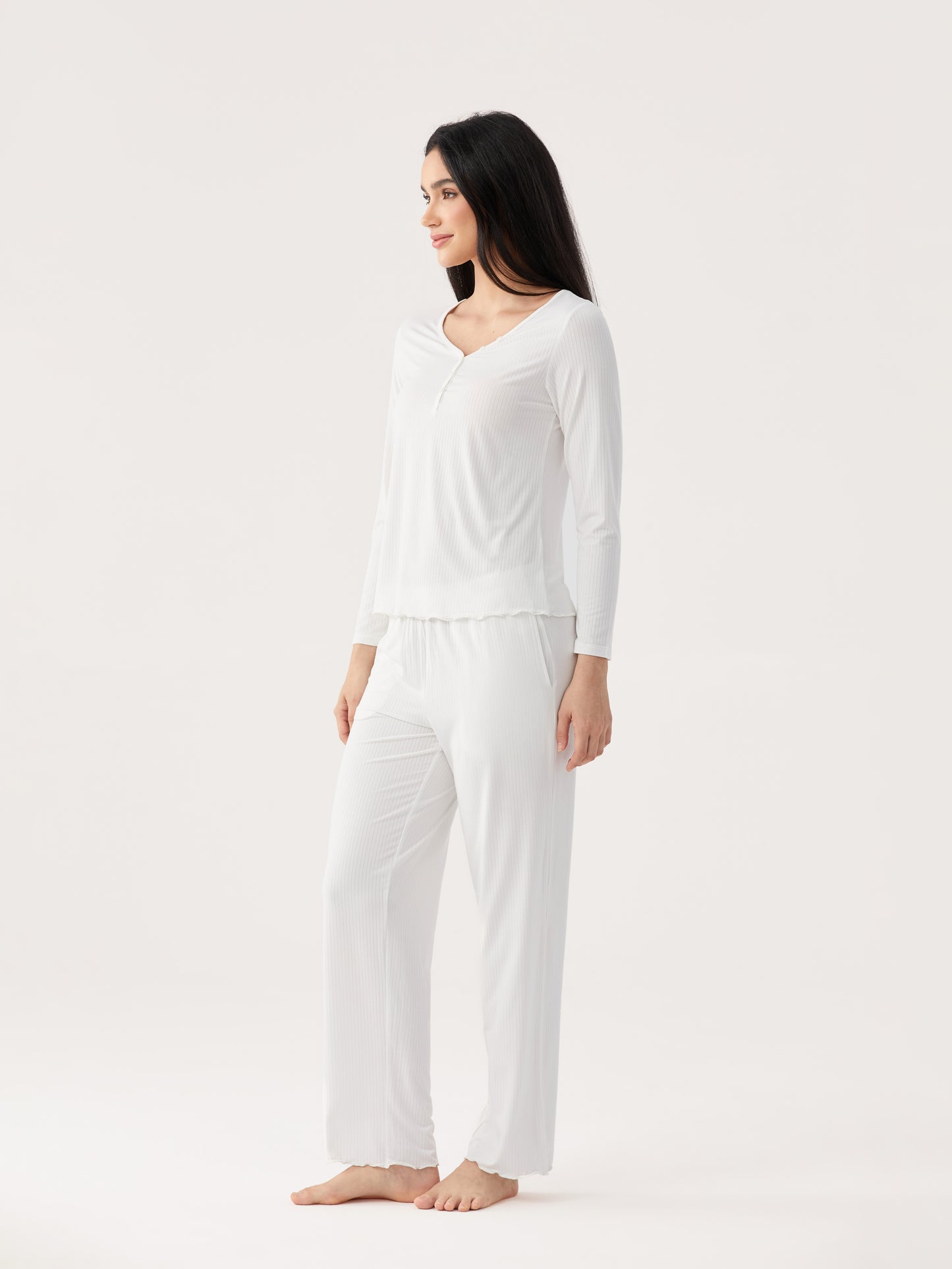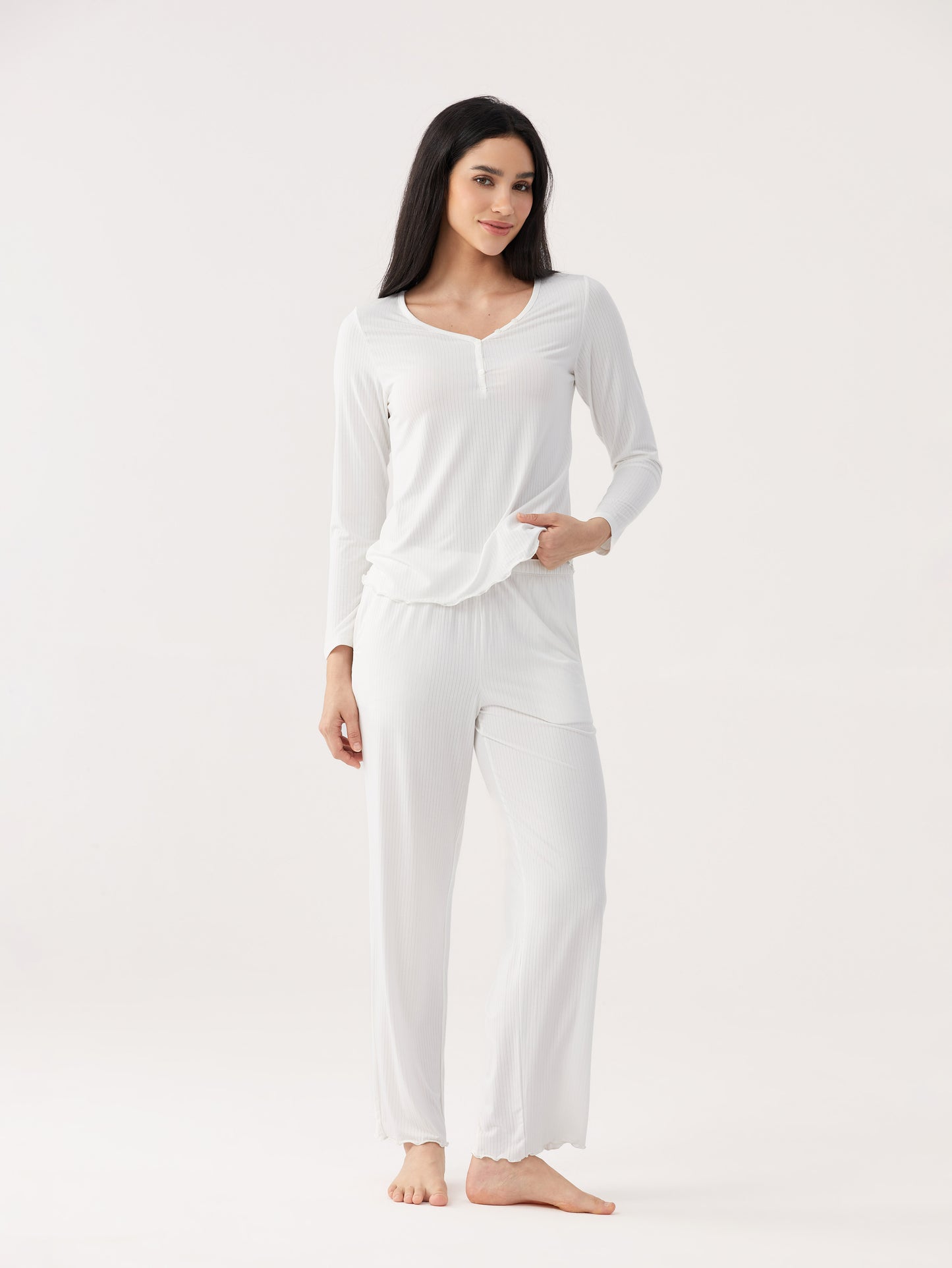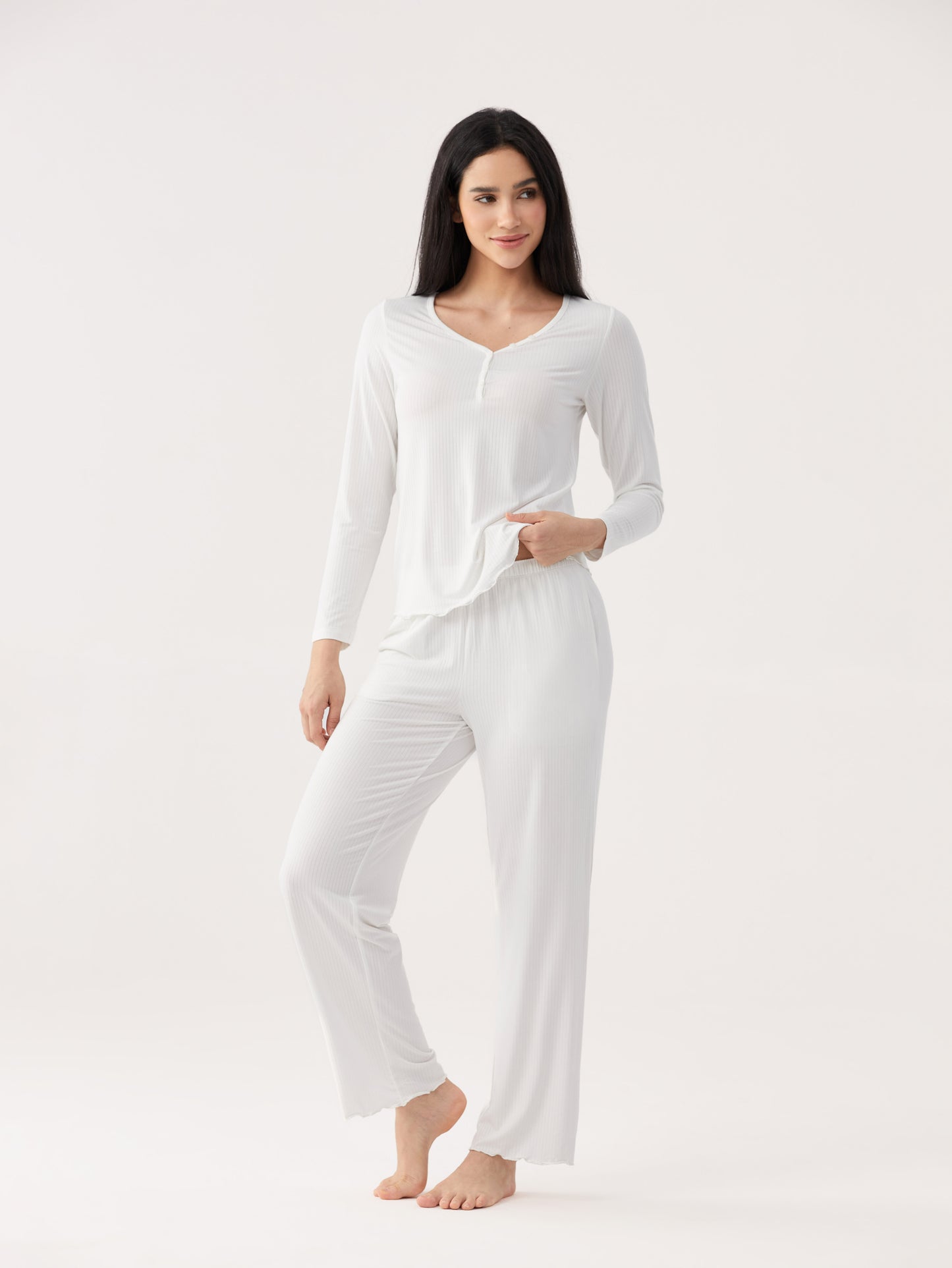 GYS Premium™ Bamboo Ribbed V-neck Long Sleeve Sleepwear Set